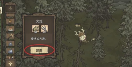 在照明栏中找到火把的制作配方,使用树枝和草制作火把。火把不仅可以照明,还可以用来点燃可燃物。
