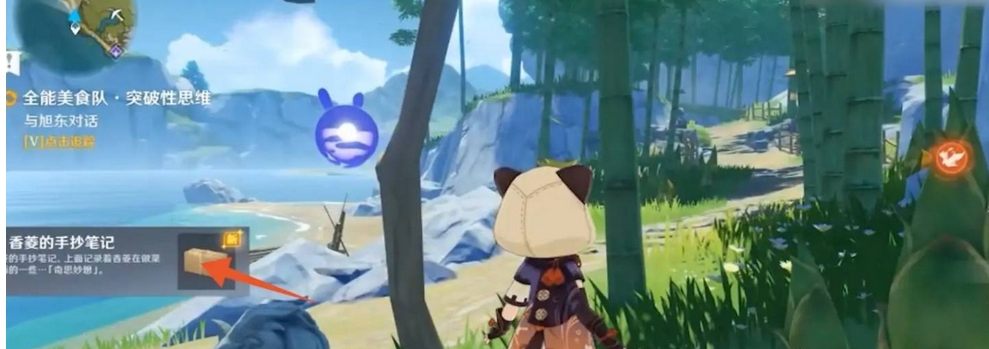5、对话完成后得到香菱的手抄笔记,再到稻妻城找到旭东进行对话完成突破思维任务。