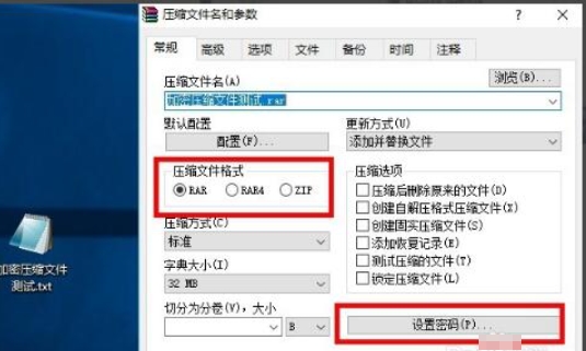 2、在压缩设置界面中,找到并点击【设置密码】选项。