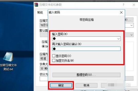 3、在弹出的密码输入框中,输入你想要设置的密码,确认密码无误后,点击【确定】按钮完成加密和压缩过程。