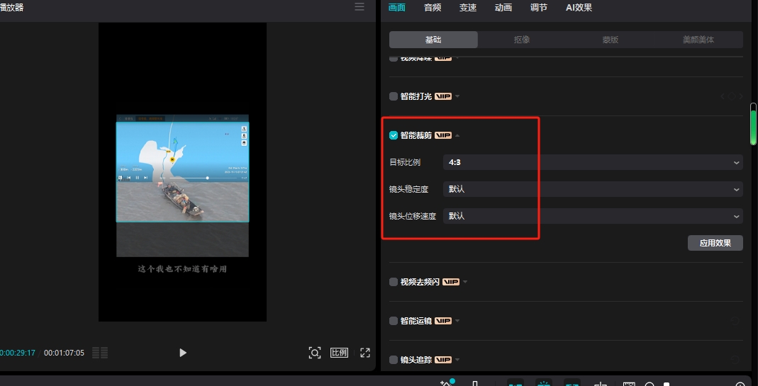 方法一:调整画面大小比例,调整位置,使水印在画面外面