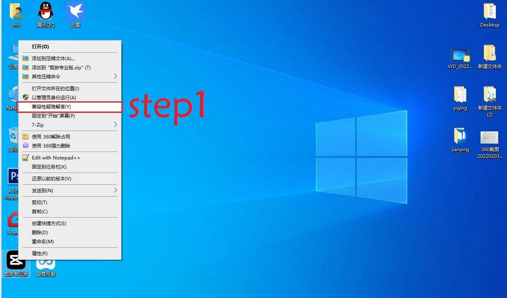 右击电脑打开兼容性疑难解答。