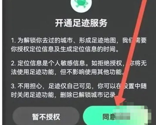 系统会提示你进行授权,以便腾讯地图能够记录你的足迹。点击“同意授权”按钮,完成授权操作。
