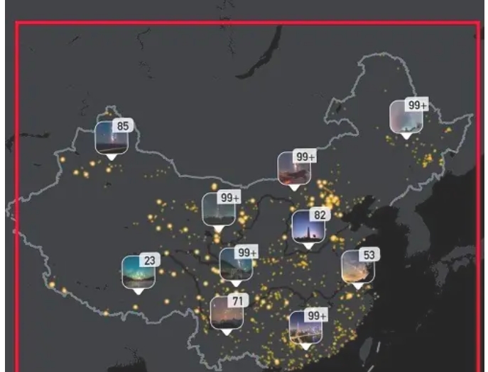 点击“星空地图”后,您会进入星空地图的查看界面。在这个界面中,您可以看到由上百位优秀星空摄影师拍摄的千余张中国各地星空美景,包括各地银河、星轨、流星雨、中国空间站过境等自然星空和航天探索等景观。此时,您可以根据需要查看不同地区的星空地图位置信息,并享受星空之美。