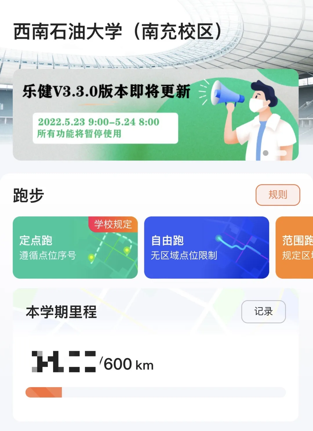 乐健体育APP:特别为大学生设计的一款体育类应用,旨在鼓励并帮助学生在大学四年期间累积完成600KM的里程任务,以此促进身体健康与体育锻炼习惯的养成。