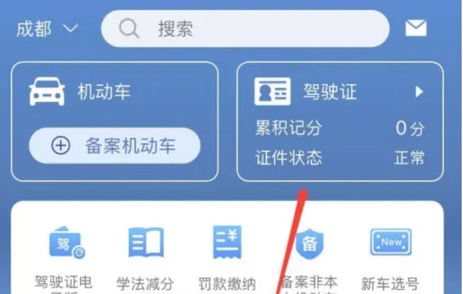 在首页的右上角或相应的位置,您会找到一个“驾驶证”的选项(具体位置可能因APP版本或手机型号而有所不同,但一般都比较显眼)。点击这个选项,进入驾驶证信息查询页面。