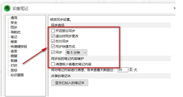 3、随后在右侧窗口中找到【开启部分同步】,勾选开启即可。