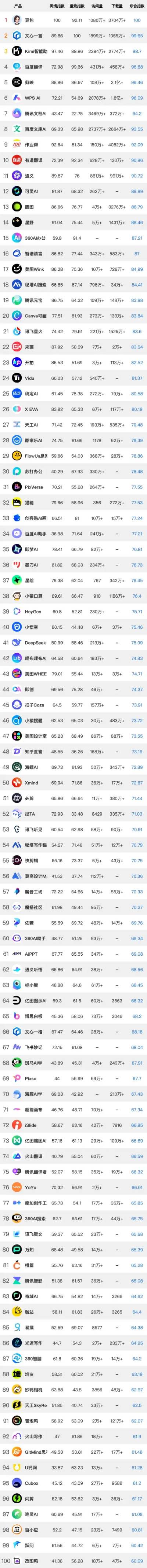 为了更真实地反映一款AI产品在国内市场的吸引力和影响力。