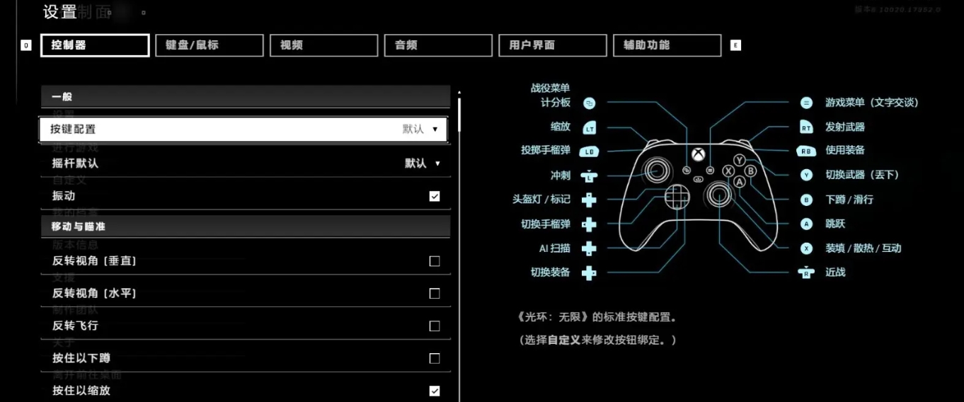 光环无限支持自动检测并配置Xbox手柄,但你也可以根据个人喜好进行自定义设置。