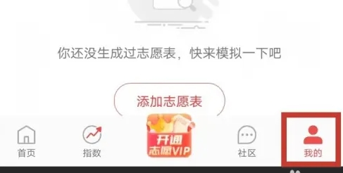 打开手机上的优志愿软件。在主界面点击右下角的“我的”,进入个人中心页面。