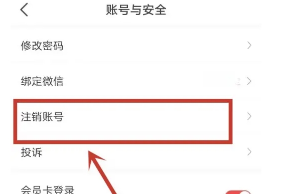 在账号与安全页面中,找到并点击“注销账号”选项。