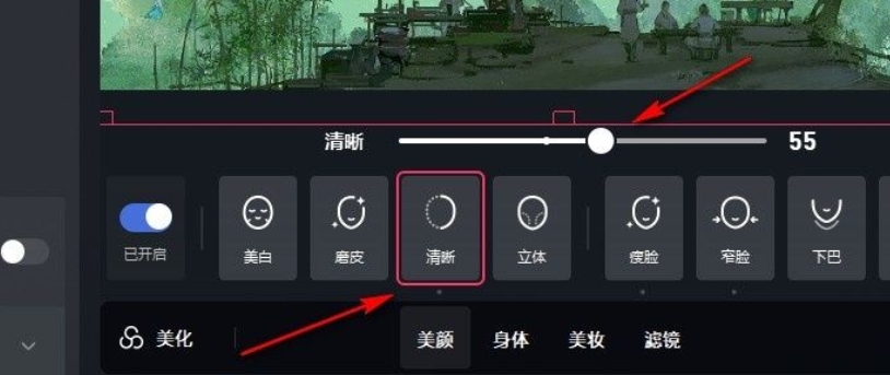 也可以在页面下方先选择一个自己需要设置的项目(如磨皮、瘦脸等),然后拖动滑块进行调节,以达到满意的美颜效果。