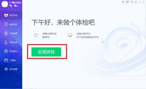 第二步:在腾讯电脑管家界面,点击这里的全面体检。