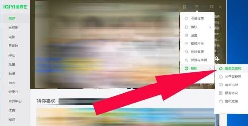 第二步:在弹出的菜单中选择【帮助】——【爱奇艺官网】选项。