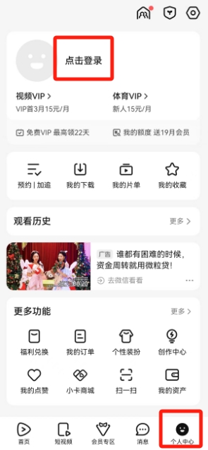 打开腾讯视频APP,点击进入【个人中心】;