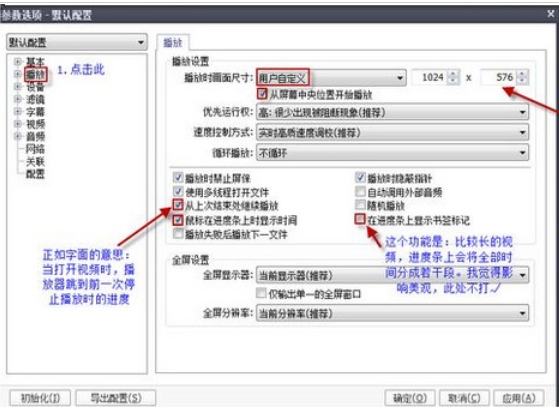 2、在"播放时的尺寸"中选择用户自定义,然后根据您的需要勾选播放功能即可。