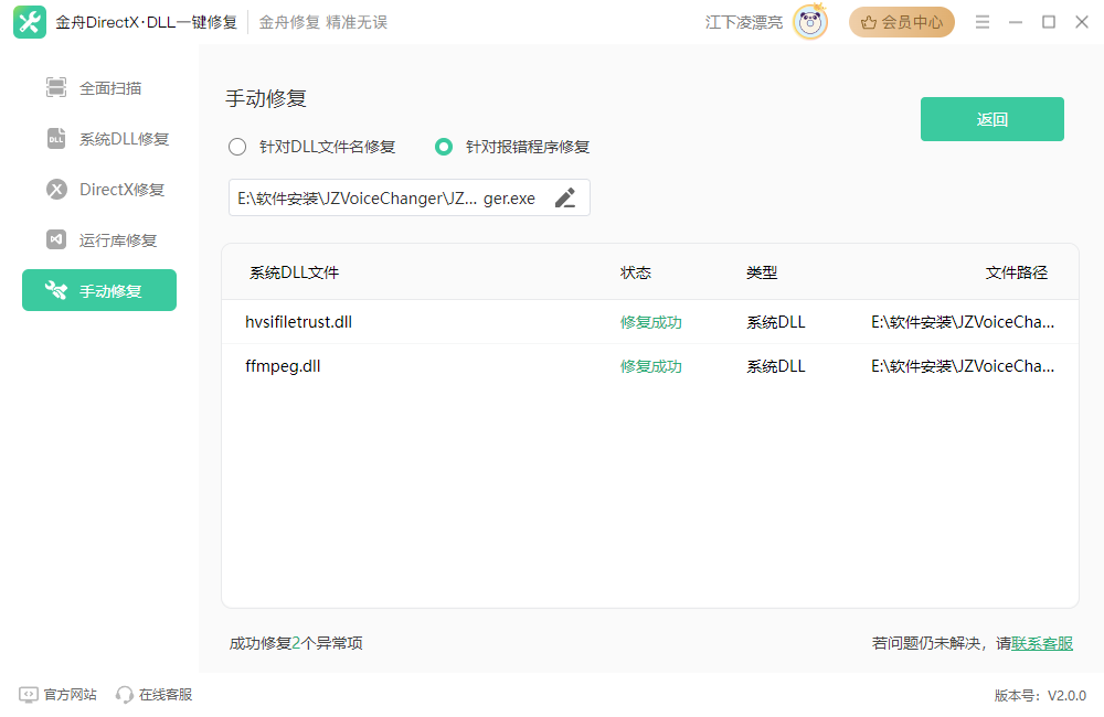 Step5、修复完成后,状态为“修复成功”;最后再次运行软件就可以正常使用了。