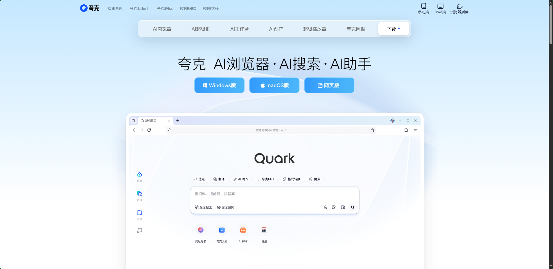 夸克浏览器网页版入口:www.quark.cn