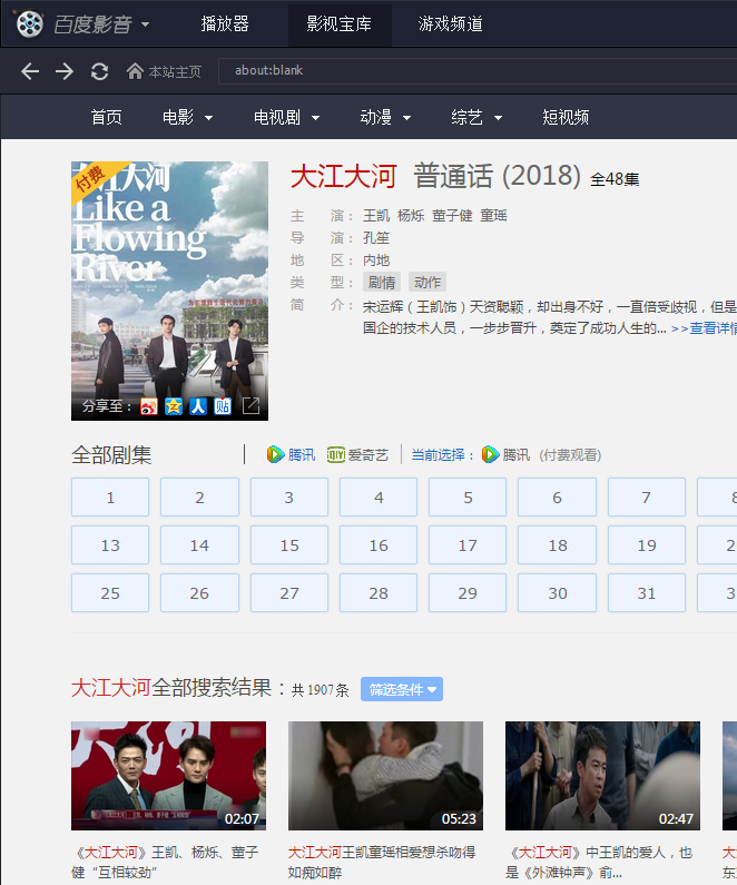 2、例:百度影音搜索 “大江大河” 展示结果: