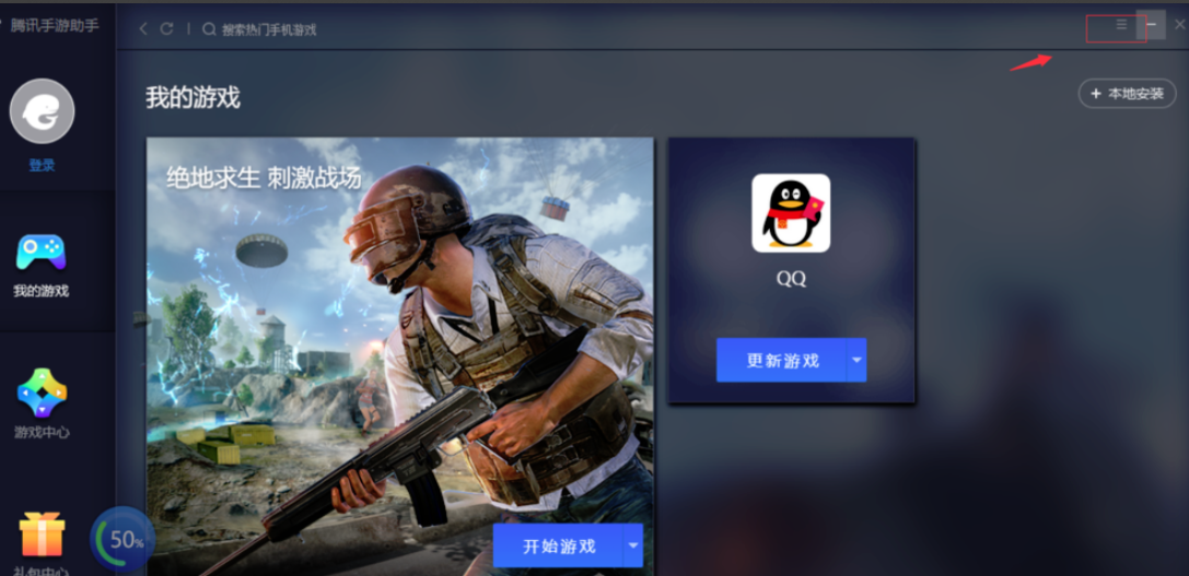 1、打开腾讯手游助手软件,打开软件后点击右上角的三个横杠图标。