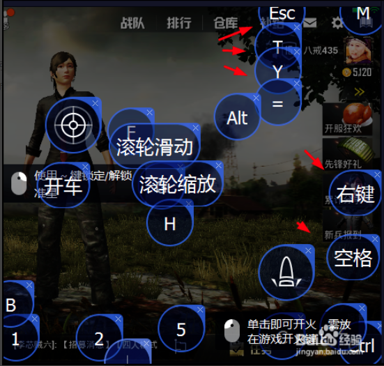 1、打开绝地求生刺激战场电脑版,打开后在右侧会显示默认的操作键。