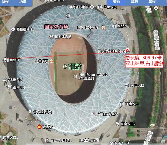 3、选择你要测距的起点,双击结束,然后就可以算错长度。