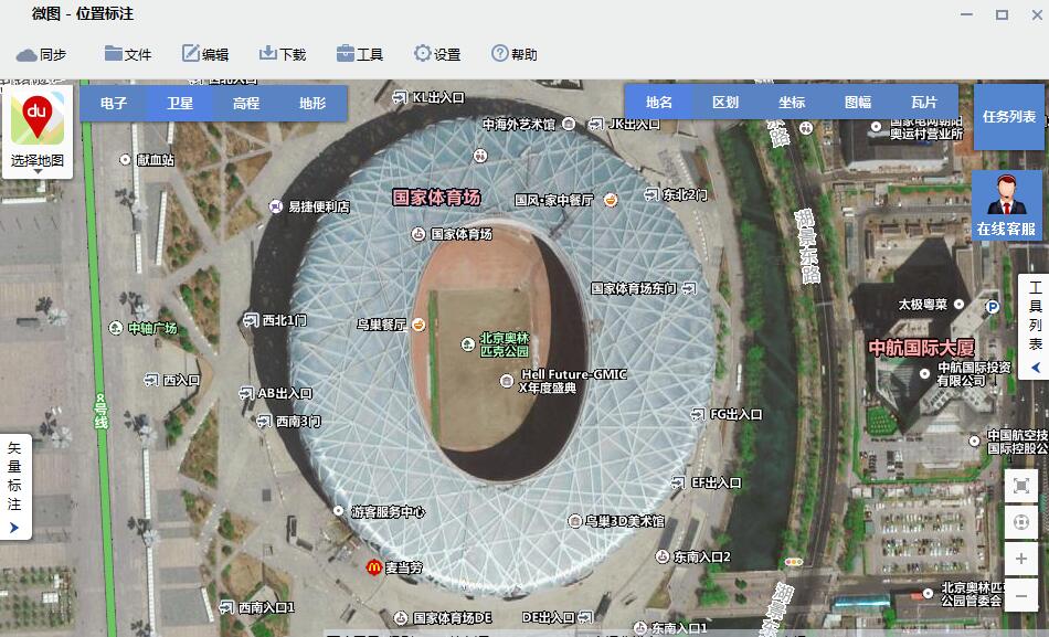 高清卫星影像下载:支持下载所有以瓦片方式发布的在线地图,包括谷歌、百度、天地图、bing、高德等。影像最高分辨率可达0.3米,能够看清建筑、道路和车辆等细节。