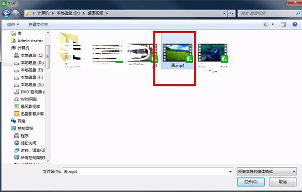 在电脑文件窗口中,找到需播放的视频所在文件夹并选中,点击 “打开”。