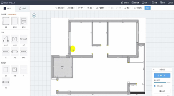 4、有一些没有生成的墙体点击户型界面左上角画墙工具补上(如图红框位置),画上墙体之后在左边选择门窗模型拖到墙上装饰即可