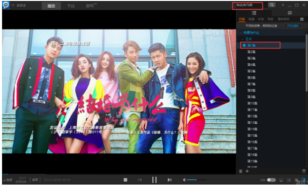 4、当你单击节目名称后,会在“节目库”窗口出现节目信息,您可以直接在上面进行节目集数的选择,也可以切换到PPTV聚力“播放器”窗口进行节目集数的选择
