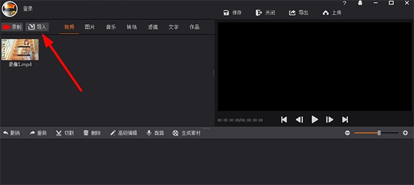 2、在打开的剪辑页面中会看到刚录制完的视频