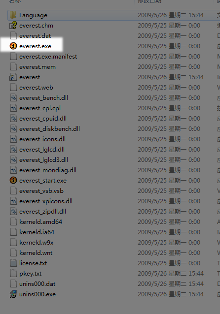3、根据文档中所说我们需要 “先用Everest检测工具检测硬件型号,然后根据型号安装相关驱动” ,选择打开【检测工具】文件夹进入如下界面: