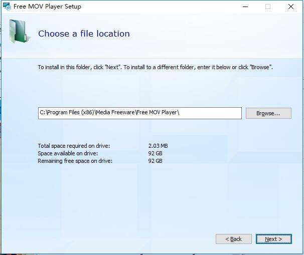 2、选择Free MOV Player的安装位置,点击next