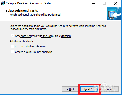 4、选择KeePass附加任务,选择完成后点击【next】。