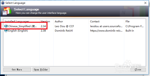 3)这个时候就会跳出选择语言的页面,点中简体中文,然后它就会自动加载语言。稍后会弹出提示,简体中文语言已激活。