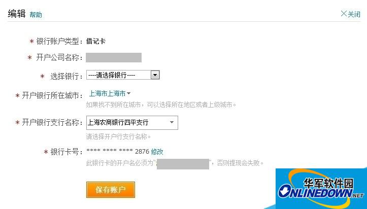 1、选择开户银行名称