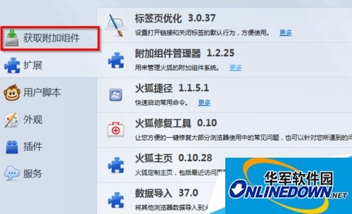 点击附加组件之后跳转到新的页面,默认打开时的页面如下。你可以看到自己已经装过的插件,我们在这里需要的是获取附加组件。