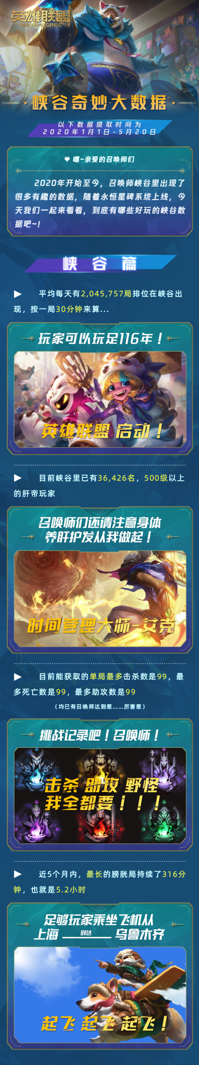 借助英雄联盟的永恒星碑系统,官方统计了 2020 年 1 月 1 日到 5 月 20 日的数据,一起来看一下吧。