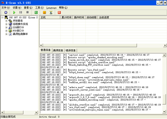 扫描结束后,x-scan会自动弹出扫描结果,结果会详细列出漏洞情况和解决建议,高危漏洞会以红色字体标出。如图: