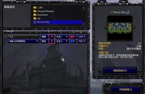 地图选择好后我们点击小三角按钮选择自己和电脑的种族并点击开始游戏,如图所示;