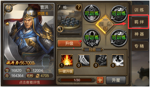 每个武将可以激活三种羁绊,同时也在游戏中会有不同的属性加成,加成的星级数受到每个武将星级的提高而提高,在羁绊列表中需要搭配的武将满足了几星的要求,就可以将羁绊点到几星。