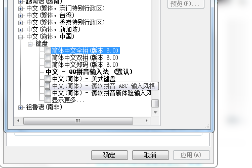 4、下拉选项卡,找到中文-键盘,勾选“搜狗输入法”,然后点击“确定”。