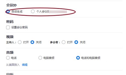 5.会议ID是很重要的,参会人员只需要输入会议ID就可以进入会议,而且这个ID是唯一的。可以自动生成也可以使用自己的个人ID,使用个人ID时需要设置一个密码。
