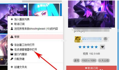 从这个壁纸上右键打开菜单,点击在“资源管理器中打开”。