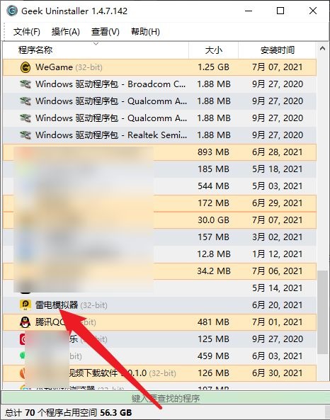 2.右击程序列表中的安卓模拟器程序。