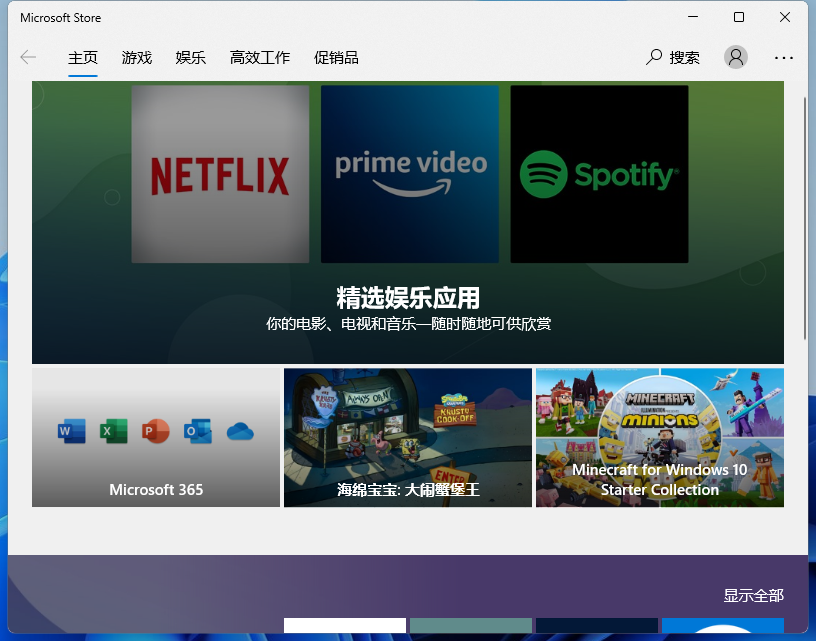 商店里不仅包括了丰富的应用,还增加了精选,包括游戏1、视频、电影等其中最大的亮点莫过于可以从应用商店下载安卓应用Windows?11?借助?Intel?Bridge?技术,可让?Android?应用直接在基于?X86?的设备上运行。