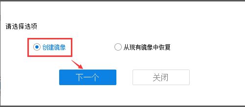 3.在弹出的窗口中选择“创建镜像”,点击“下一个”按钮,进入创建镜像界面。