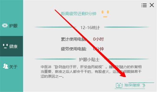 2.进到护眼宝界面,点击左侧“健康”,如下图。