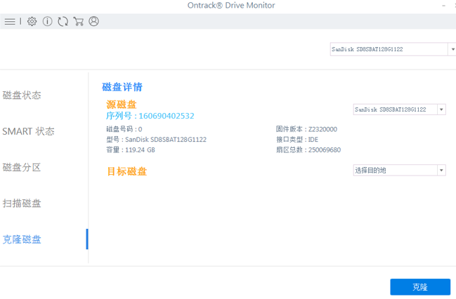 克隆磁盘对数据保存是非常重要的,我们在使用电脑的过程中,难免会因为失误造成数据大量丢失。使用EasyRecovery 对计算机磁盘进行克隆,即便计算机受损,有了数据备份就不必过于担心了。对整个磁盘的数据进行复制到另一个磁盘或者硬盘中。如下图所示:选择要克隆的磁盘,再选择好克隆的目的地即可完成克隆。