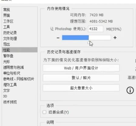 第二步:然后在首选项里面点性能,将旁边的滑块滑到90左右(如图所示)。